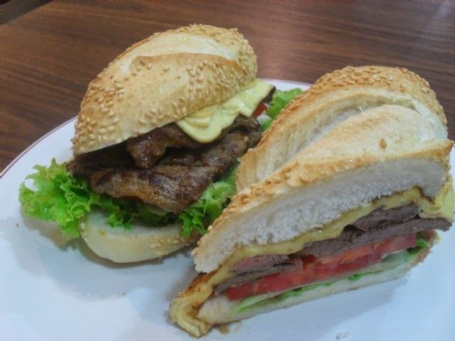 180 g de contra filé e 3 fatias de queijo. Pão francês